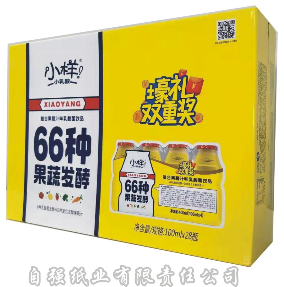 自強包裝擁有1.8米7層高速瓦楞紙板線1條、1.8米2層高速瓦楞紙板線1條、全自動8色預印機1臺、自動4色至5色高速水墨印刷機3臺、全自動5色至5+1膠印機2臺、全自動粘箱機2臺、全自動粘釘機1臺、全自動裱紙機2臺、全自動模切機3臺、全自動覆膜機1臺、UV上光機一臺,日紙板產(chǎn)能達到40萬平方米以上、日紙箱產(chǎn)能達到50萬件以上。